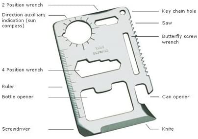 This Mini survival tool is ideal for camping, hiking, backpacking,hunting,trail riding, or a great backup tool in case of emergency or need. Keep it in your wallet for that extra tool you know will come in handy!