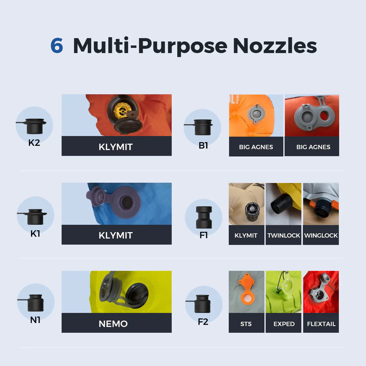 تحتوي على 6 فوهات متعددة لتناسب معظم العلامات التجارية