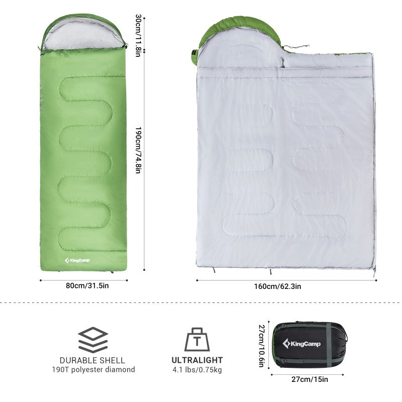 - 【Combination】A left and a right sleeping bag can be zipped together to make a double-sized sleeping bag and incorporates a comfortable sleep system.