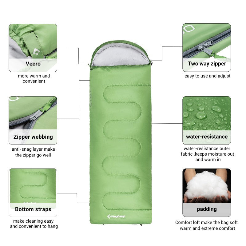 - 【Two-Way Zipper】With two-way separating zip on one side, it will be very convenient for you to get in or out of the sleeping bag. You can also adjust the ventilation level and temperature of the sleeping bag by your preferences. The zipper baffle will make the zipper goes well.