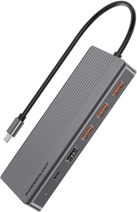 Powerology 12 in 1 Dual Hdmi & DP 4K USB-C Hub Ethernet 10Gbps Data Transfer