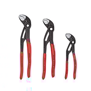 Content: 1 x 87 01 180 KNIPEX Cobra® High-tech Water Pump Pliers, 1 x 87 01 250 KNIPEX Cobra® High-tech Water Pump Pliers, 1 x 87 01 300 KNIPEX Cobra® High-tech Water Pump Pliers,