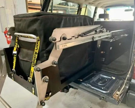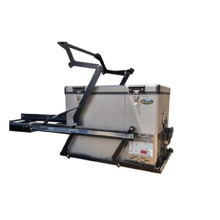 The QUICK PITCH Drop Down Fridge Slide is built from premium aluminum, stainless steel and heavy-duty lockable sliders making this product so robust that it will handle whatever gets thrown at it. Dropping your fridge to a workable height for the whole family to access the fridge. The drop-down fridge slide mounts on top of your new or existing drawer system or any other surface. With an easy unlock of the lockable slides the fridge pulls out, an easy mechanism drops the fridge down. The fridge slide will give you 260mm clearance from the back of your fridge to your drawers, making this product suitable for any SUV, 4×4 truck and any overlanding vehicle.