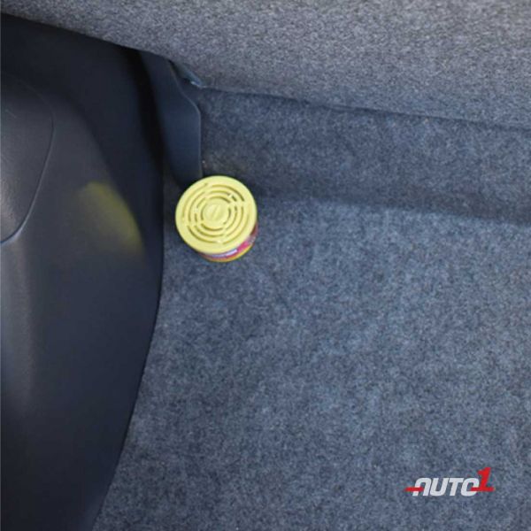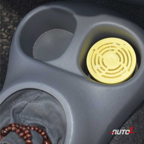 The air freshener is spill-proof and the fragrance can be controlled by the adjustable lid. The round shape of the can is suitable for use in the interior of the cars, homes and other places which require a pleasant smell.