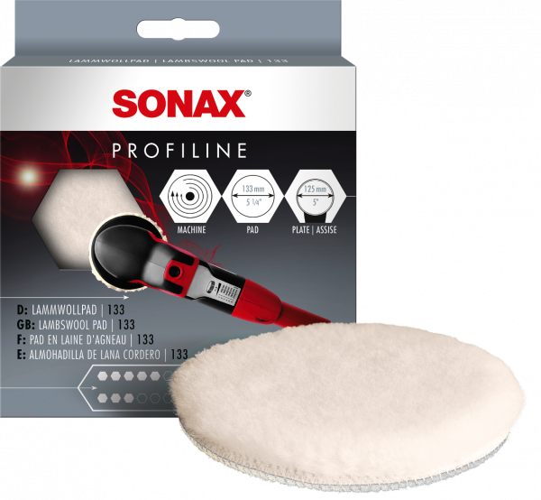 SONAX Polishing Pad Lambskin is a dense, high quality lambskin for professional polishing with a polishing machine. It enhances the cutting efficiency of abrasive polishes, and simultaneously reduces the polishing temperature.