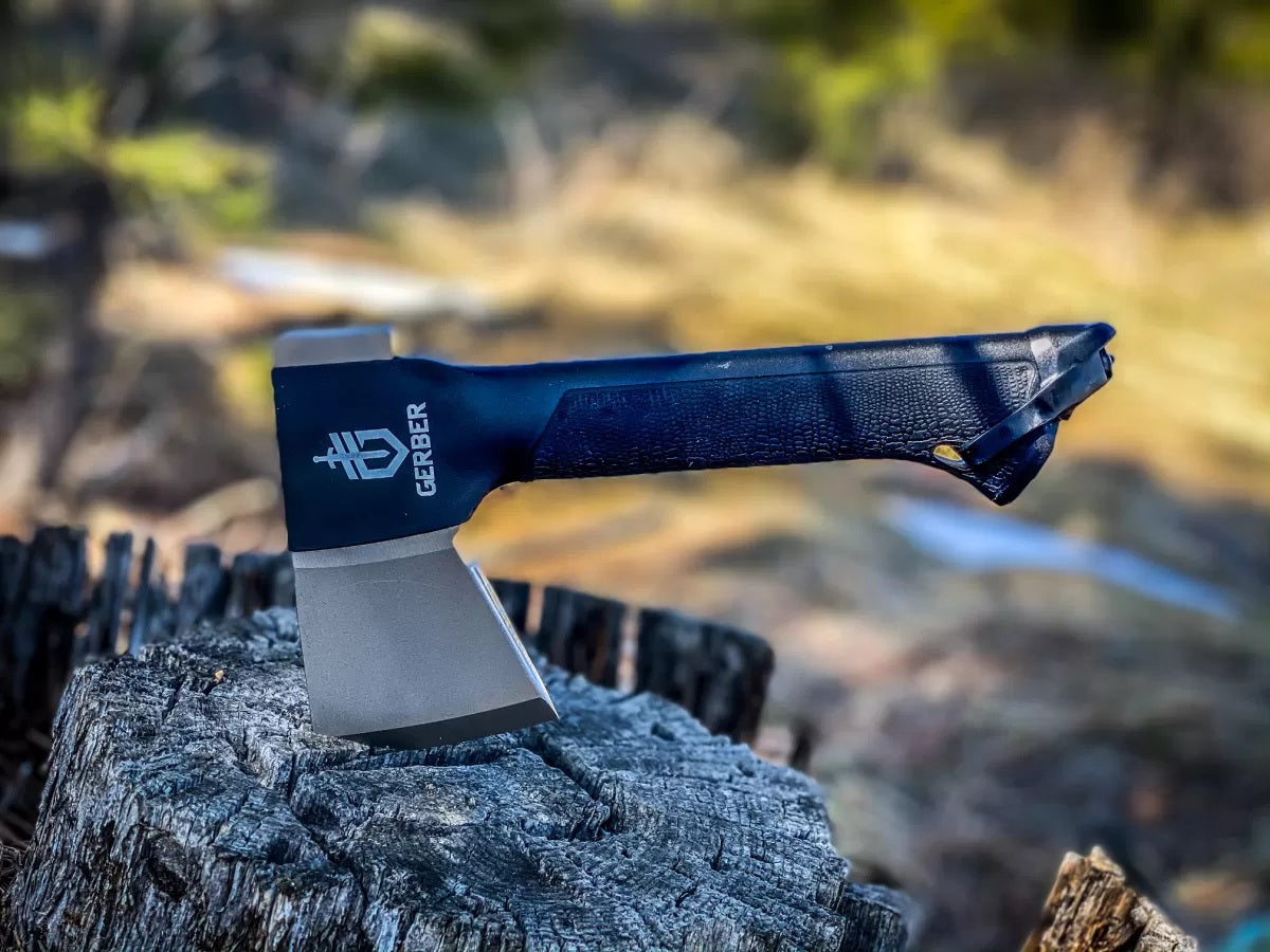 THIS STOUT COMBO FITS PERFECTLY IN HAND, OFFERING DOUBLE THE UTILITY WITH A FIXED BLADE KNIFE FITTING SNUGLY INTO THE HANDLE CAVITY. WITH GERBER'S RENOWNED GATOR GRIP OFFERING UNPARALLELED COMFORT ON BOTH TOOLS AND A FORGED STEEL AXE HEAD, YOU WILL QUITE LONG BEFORE YOUR TOOLS DO.