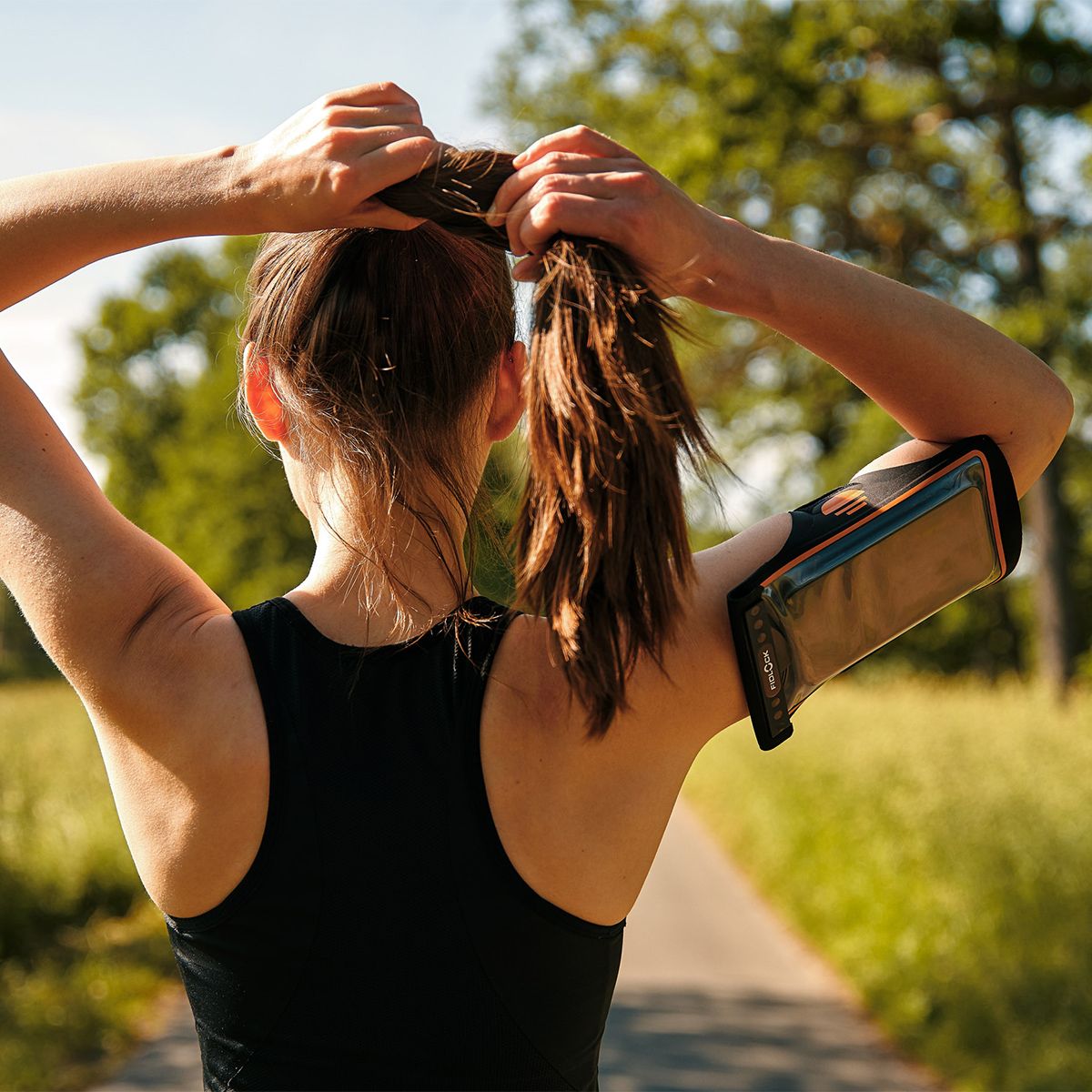If you are surprised by a downpour while running, the bag on the upper arm is already prepared.