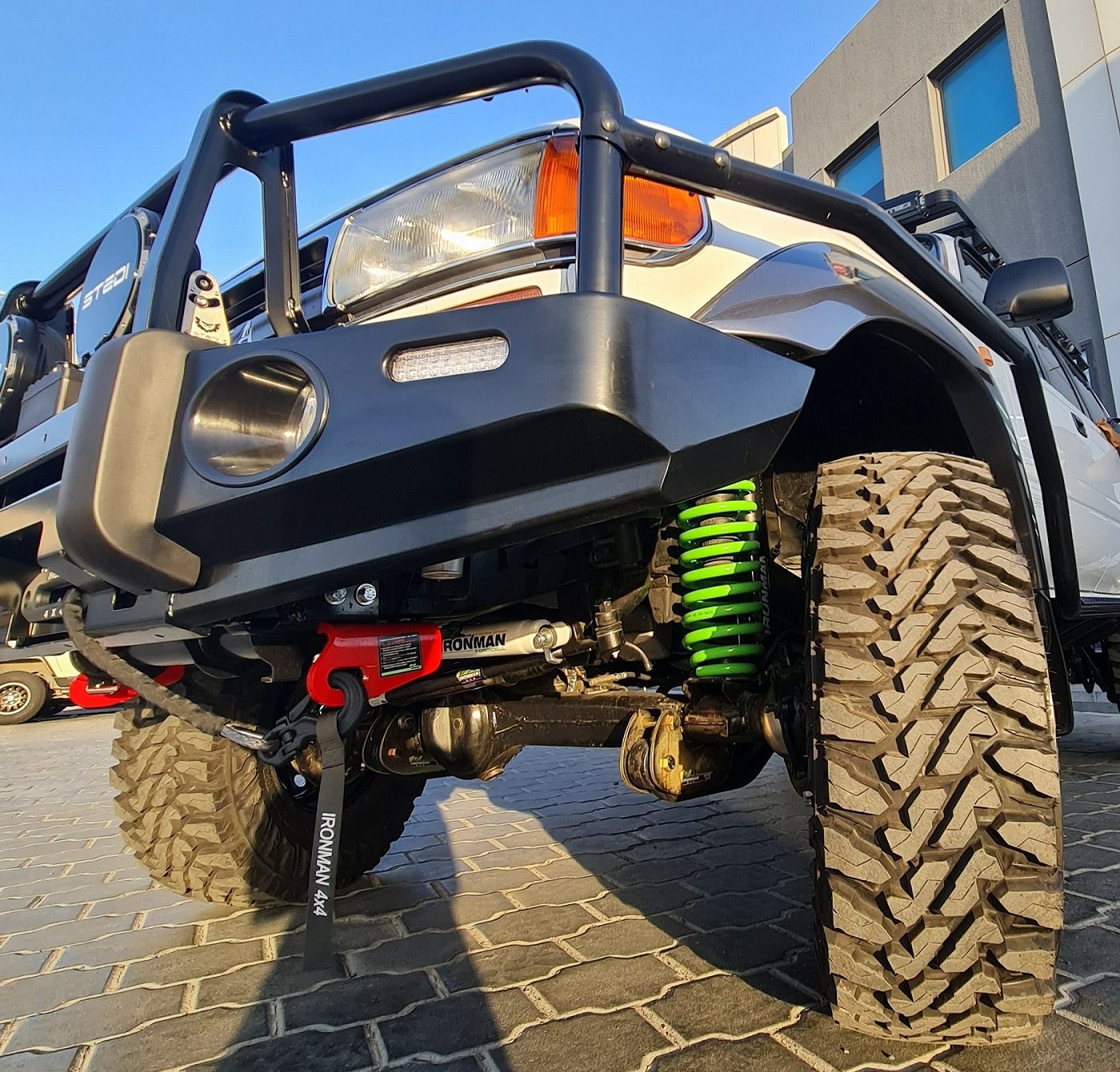Recovery is an inevitability when four wheel driving. You need rated recovery points that can safely withstand and distribute the loads of a recovery – which is something stock tow points aren’t designed to do.