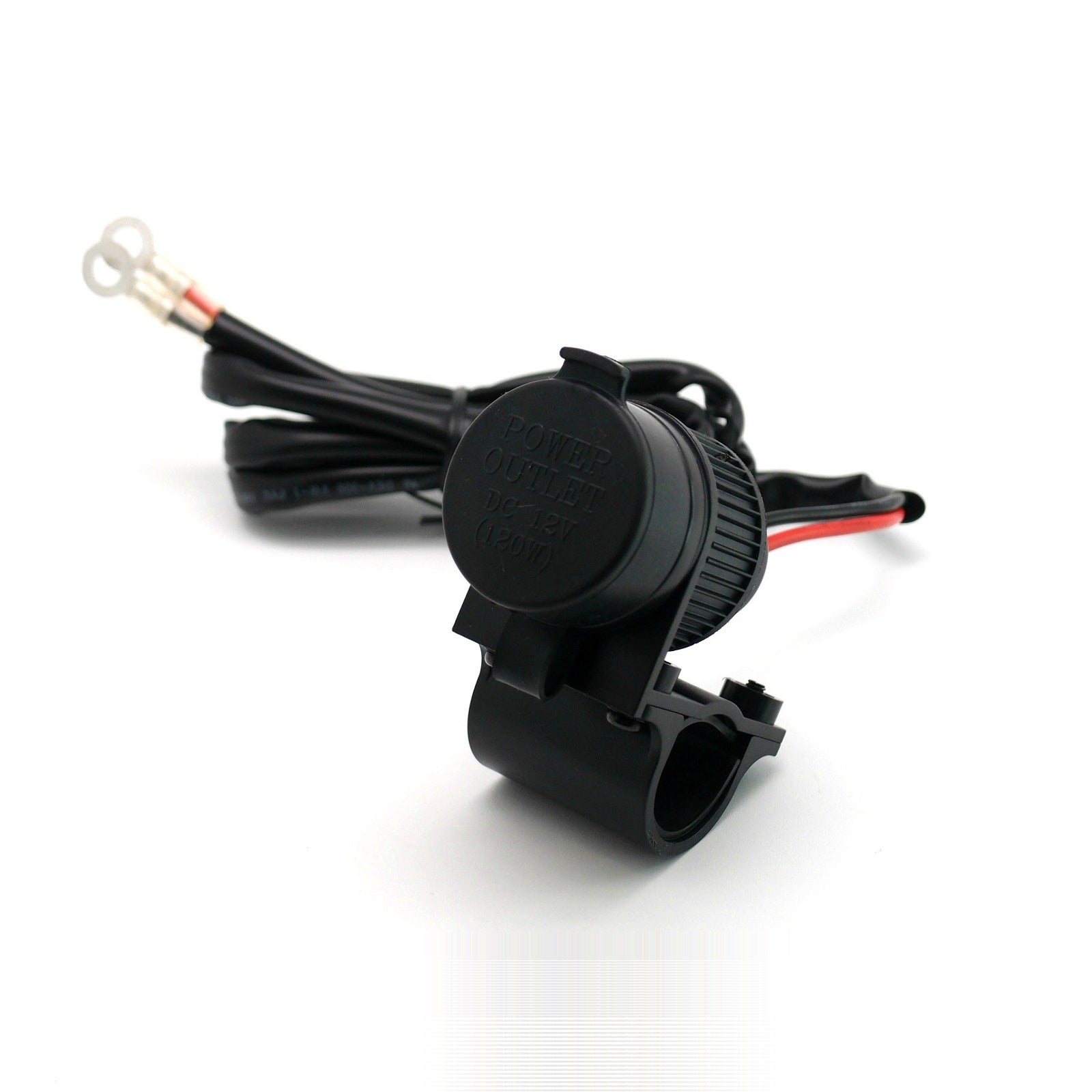 Power Socket with handlebar bracket. Enables use of electrical product from cigarette lighter socket, such as cell phone charger, GPS etc.