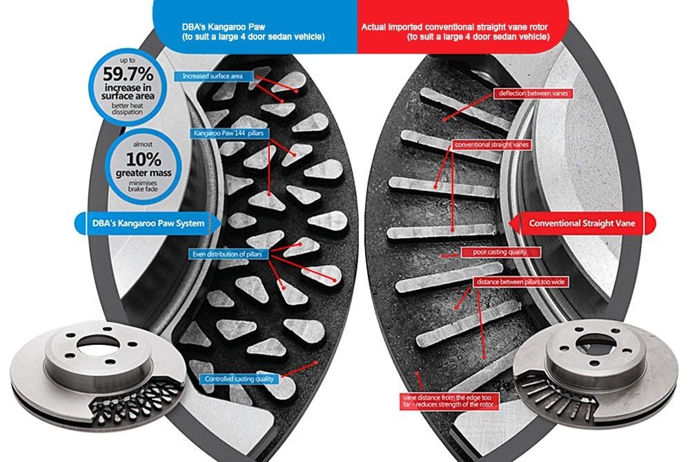 Unique Kangaroo Paw vane design for up to 20% better heat dissipation, increasing braking effectiveness and prolonging brake life.
