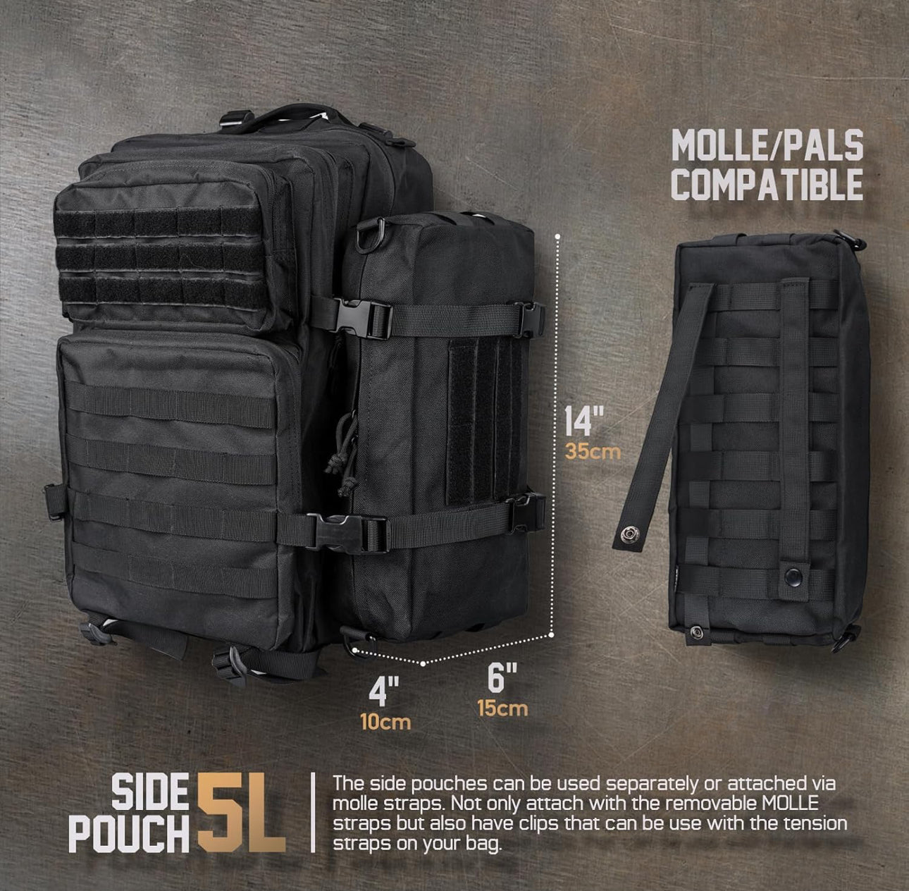 ★Designed to be Vertical Use. Well suited for adding extra space to the sides of a MOLLE compatible backpack.