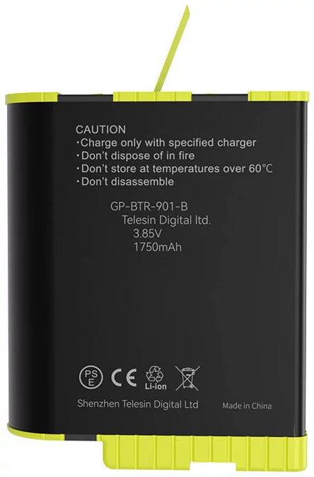 بطارية Telesin لكاميرا GoPro Hero 9 / Hero 10 (موديل GP-BTR-901-B) بسعة 1750 مللي أمبير