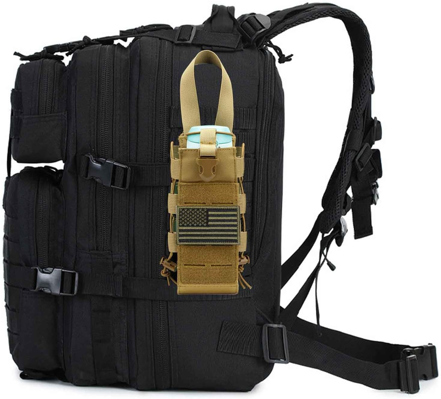 • Adjustable Fit for Various Bottles: Tactical water bottle pouch size: 8.9x3.2 inch. This molle water bottle carrier with adjustable buckle for backpack can accommodate different sizes, from standard cans to 40 oz Bubba bottles, 32 oz Hydro Flasks, and Nalgenes.Good Size for Carrying