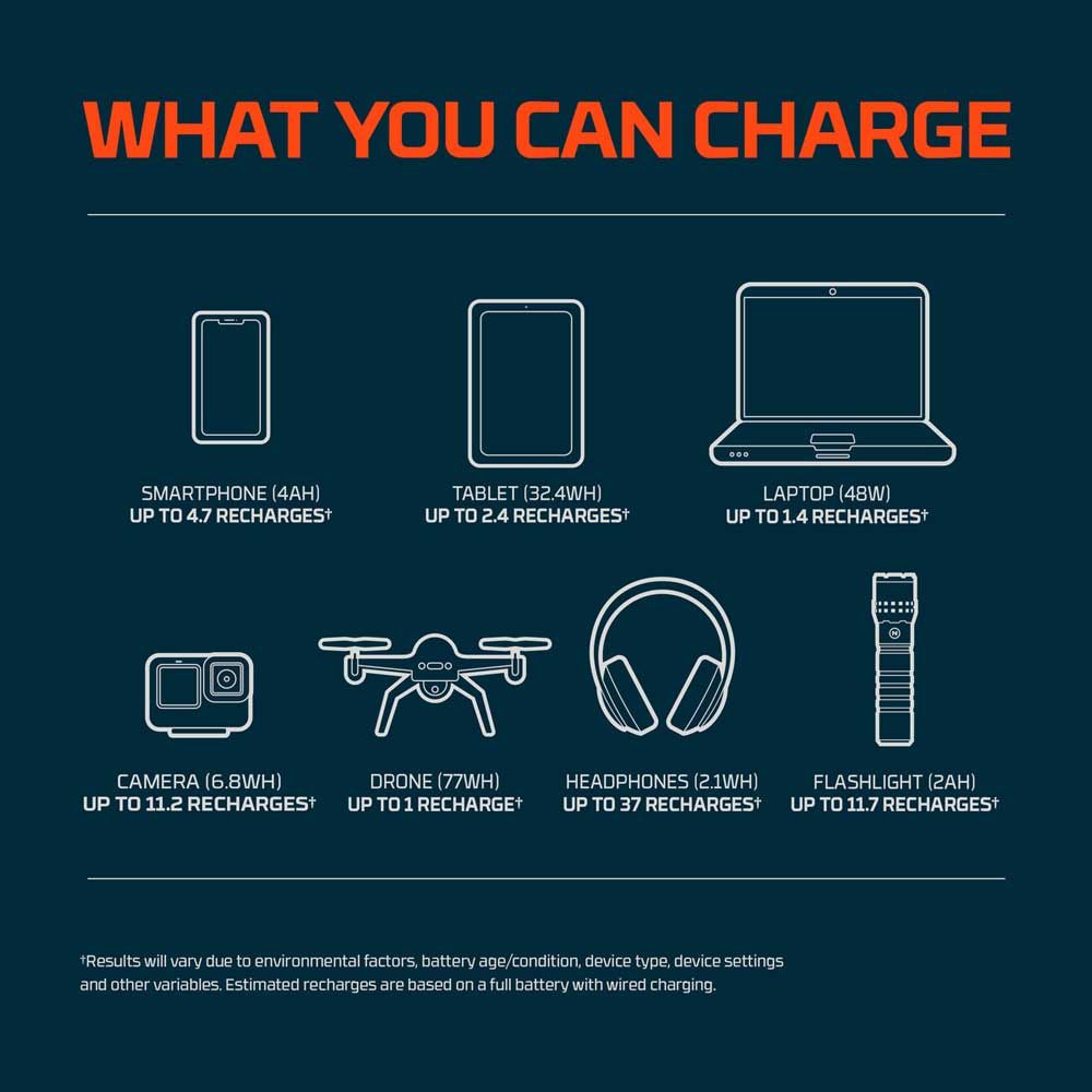 - Smartphone: Recharge up to 5.67 times on a full charge.