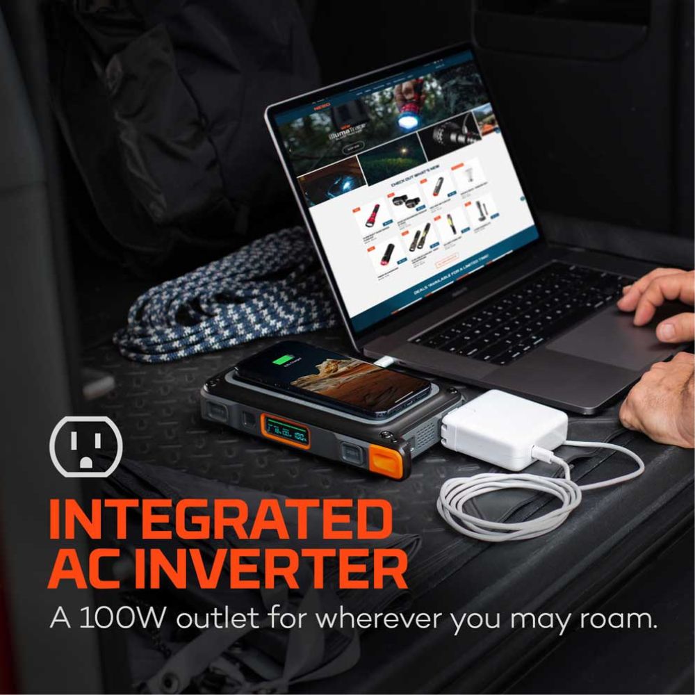 - Integrated AC Inverter: Delivers 100W power with a 120W surge.