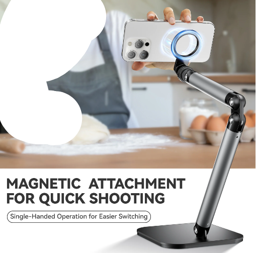 3.Damping rotating shaft, flexible angle, flexible adjustment at various angles for overhead shooting and vertical shooting.