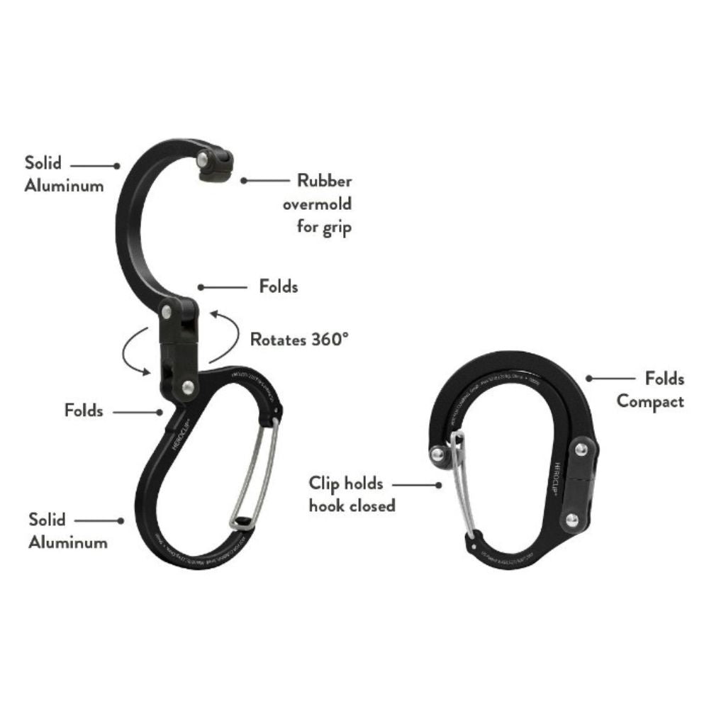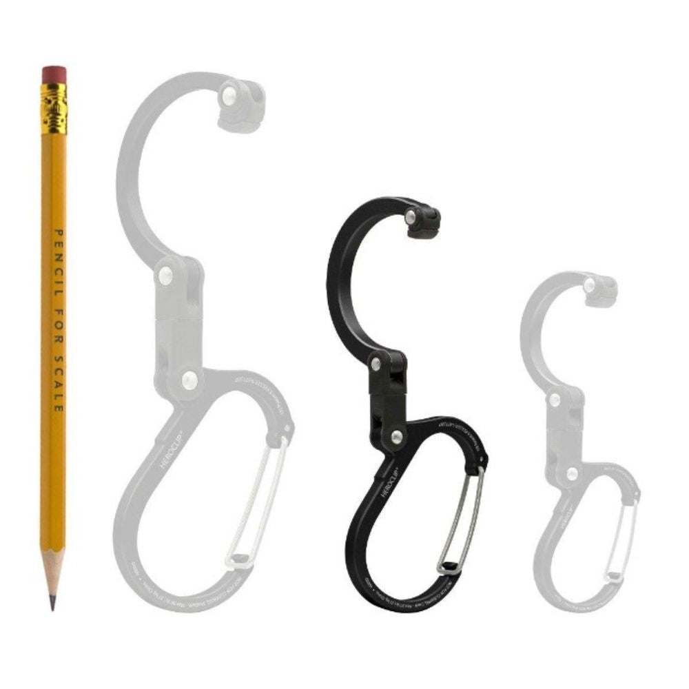Perfect for midsize items you encounter every day, Heroclip Small gear clip lets you hook and hang commuter bags and backpacks from shelves, counters, tables, chairs or even doors. They’re also great for hanging gravity filters from tree branches, tools from a ladders, or carry-on bags from roller suitcase handles. This versatile gear clip hangs securely, rotates 360°, and folds compactly in ways other carabiners, clips and hooks can’t, helping you keep your gear organized and exactly where you want it, no matter the activity. The clip also features a wider clip gate compared to standard carabiners and hooks, and a hook with a grippy rubber tip for hanging things from flat surfaces.