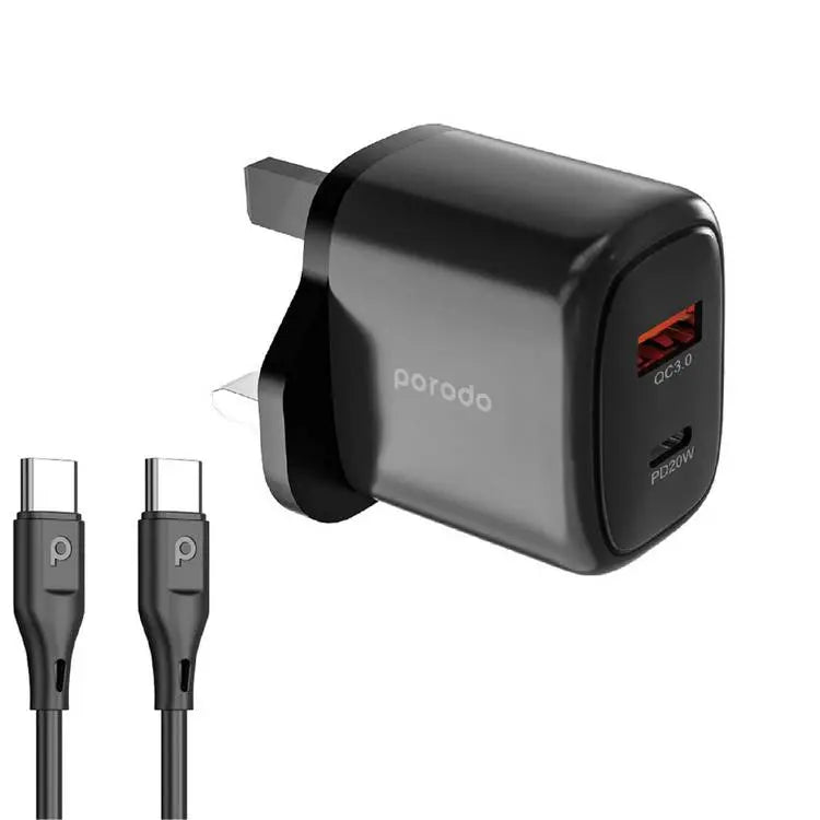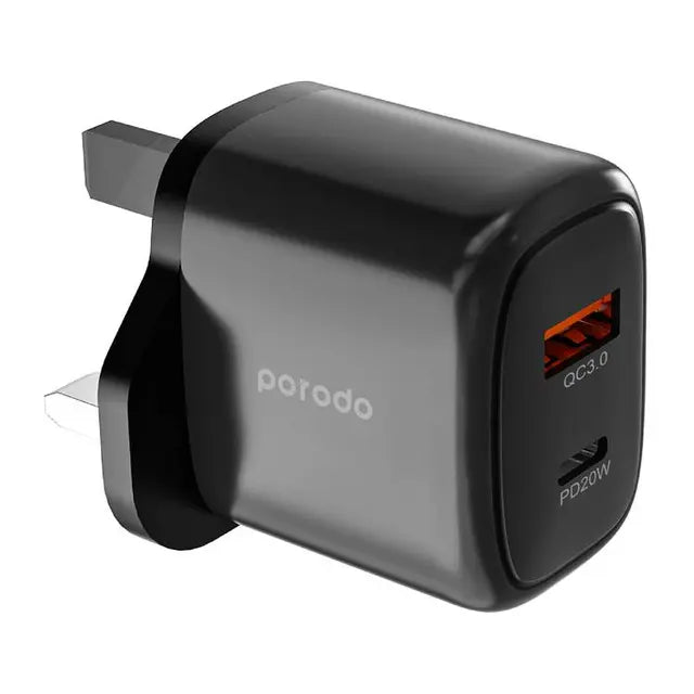 Porodo Dual Output Quick Charger USB-C PD and USB-A QC