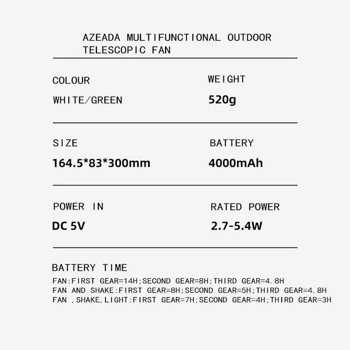 Crony WT-RD09 Telescopic Outdoor Fan With LED lighting Tripod Household Retractable Fan USB Rechargeable Outdoor Camping Multifunctional Fan