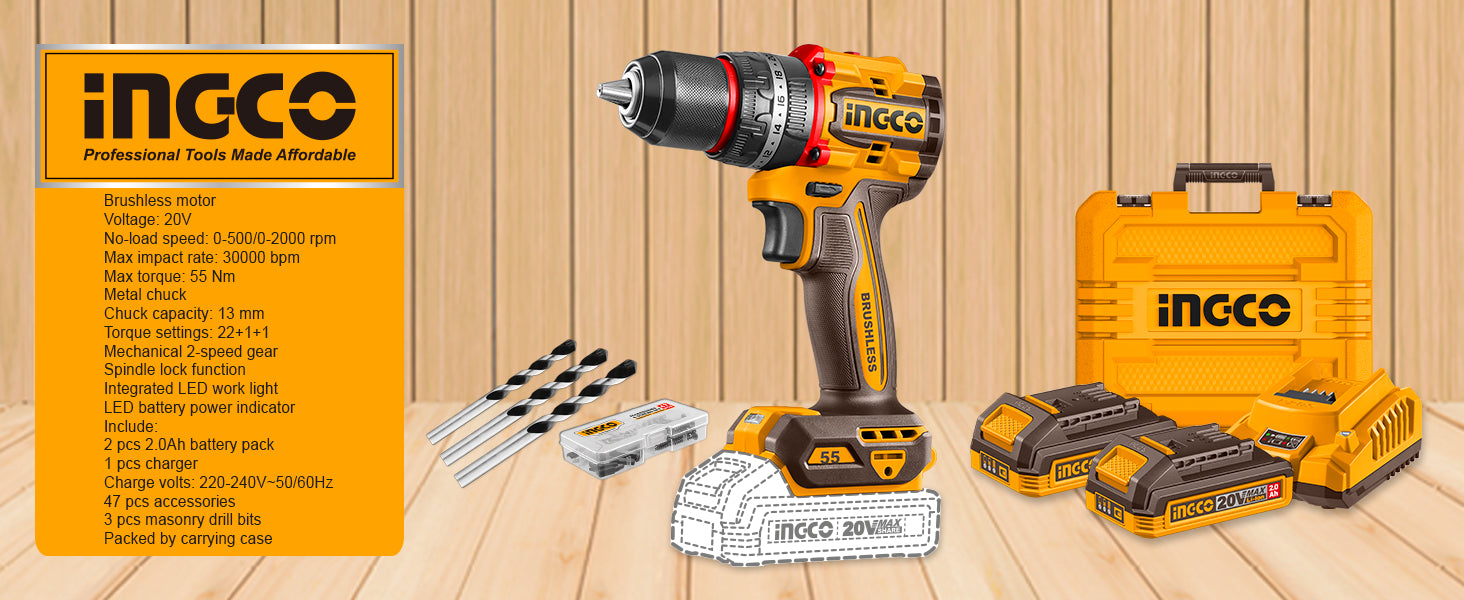 مقدح بطارية 16 فولت BL مع بطاريتين 2Ah وشاحن وصندوق – إنغكو CDLI16682