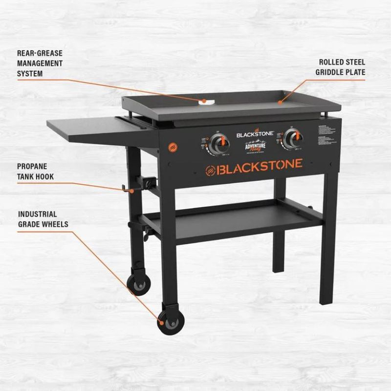 The Blackstone Adventure Ready 28" Griddle Cooking Station offers versatility for your entire family. Combining a traditional cart design with portability, this station is equipped with two wheels and a non-slip handle for easy maneuvering. The foldable and lockable legs make it travel-friendly, allowing you to enjoy 524 square inches of cooking space anywhere your heart desires, as long as you have a propane tank handy. With two independently controlled cooking zones, you can masterfully handle a variety of culinary creations, delivering a total of 34,000 BTUs. For your convenience, it boasts a single side shelf for extra prep room and a lower shelf for storage. Regardless of your grilling preferences, this Blackstone griddle station is bound to elevate your cooking experience.