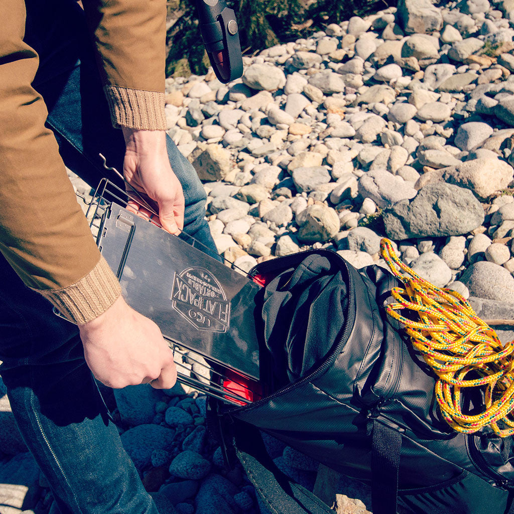 The Flatpack portable grill & firepit packs compact for easy transportation to the beach, campsite or barbeque. It's constructed of stainless steel for durability and easy maintenance. After a quick 30 second set-up, you're ready to go. All you need to do to set up this grill is unfold it and place the grates on top. It has a stable base for safe grilling and the sides serve as wind breaks for grilling in windy conditions. It can also be used as a firepit, to help you leave no trace.
