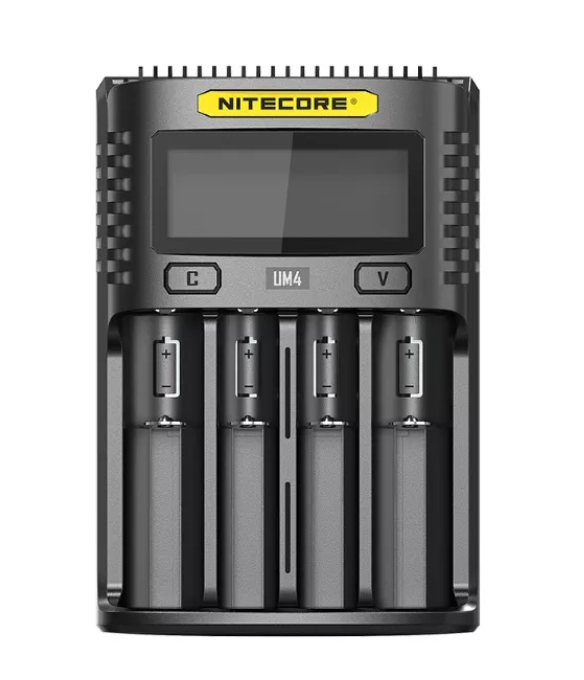 The Nitecore UM4 charger is a fast and efficient USB charger that can charge up to four batteries with the option to control each bay independently. The charger has a maximum output of 1500mA in a single slot - please note, this is only achievable if using a 9V 2A QC 2.0 charging adapter.