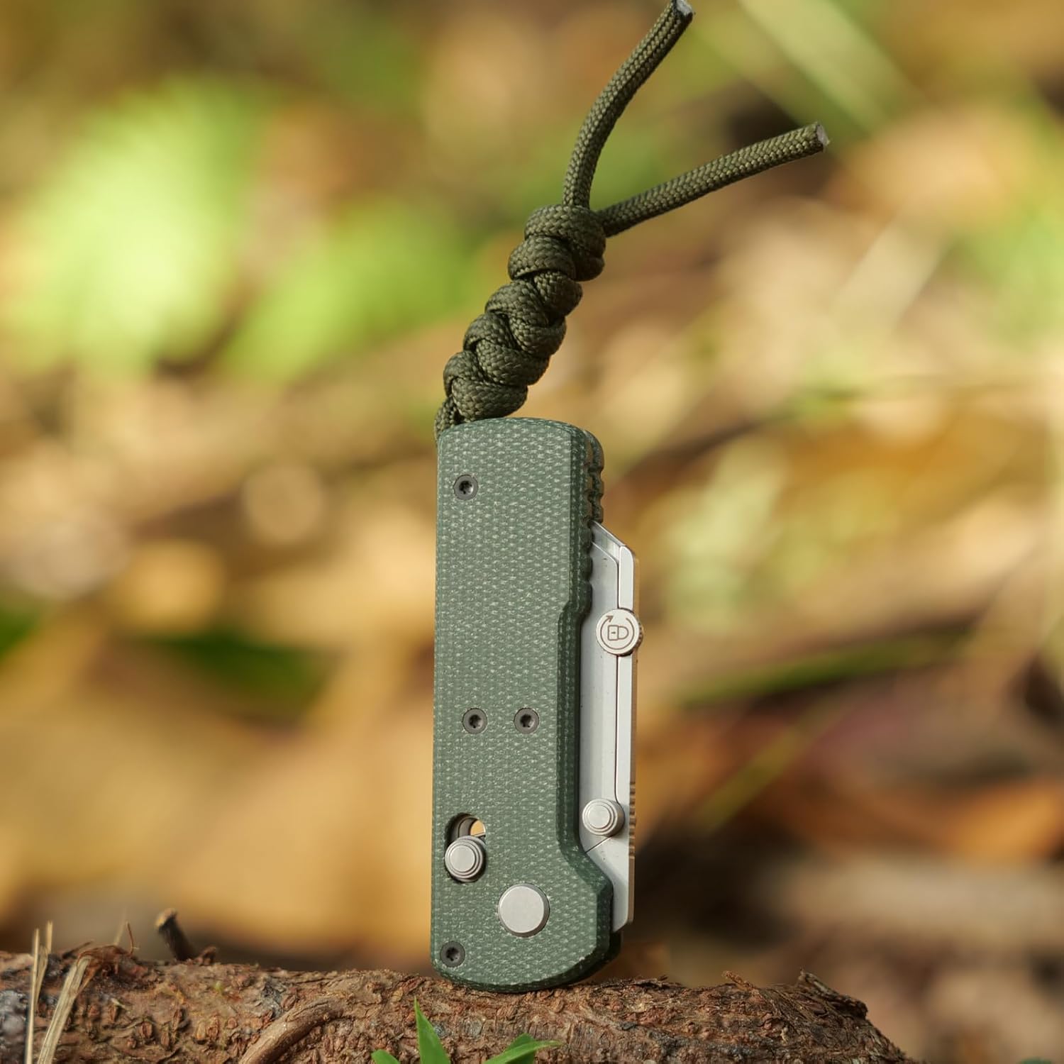 The OKNIFE U1 Green Micarta EDC knife is Compatible with standard 60mm x 19mm x 0.6mm utility blades, whether hole-less or with 4-holes, ensuring you always have a sharp extended edge at hand. Swiftly replace blades using the rail lock system, ensuring minimal wobble and maximum blade exposure for versatile cutting tasks