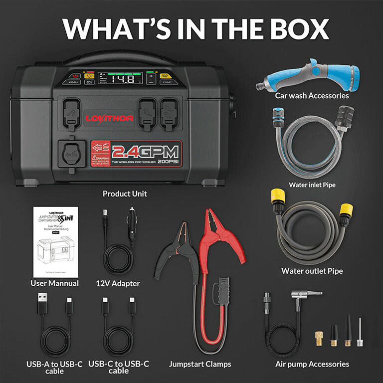 - LOKITHOR AW401 best portable jump starter for diesel trucks utilizes a powerful 100-watt motor to drive the high-pressure water pump.