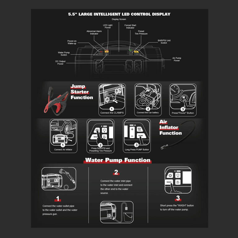 - The portable power station jump starter is professionally calibrated to maintain a digital display within 1.0% of the tire's pressure.