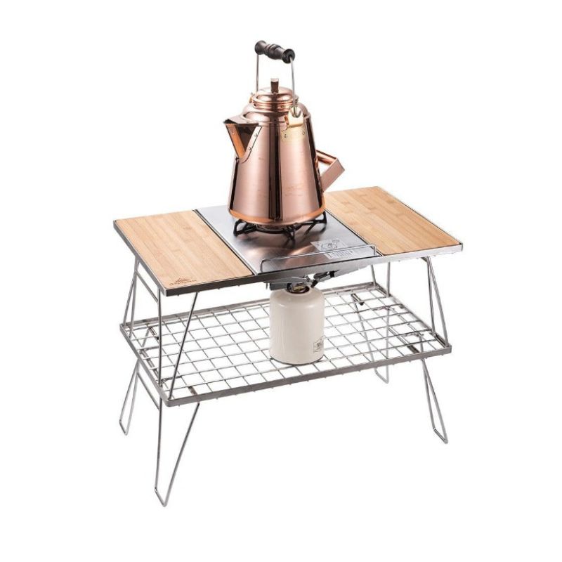 1. Multi-functional Table with Center Stove: This table is perfect for your outdoor cooking needs. It can be easily paired with field racks and metal racks of similar size. Placing it on a field rack allows you to set up your cooker and ingredients on the lower tier, while the upper tier serves as a convenient counter space.