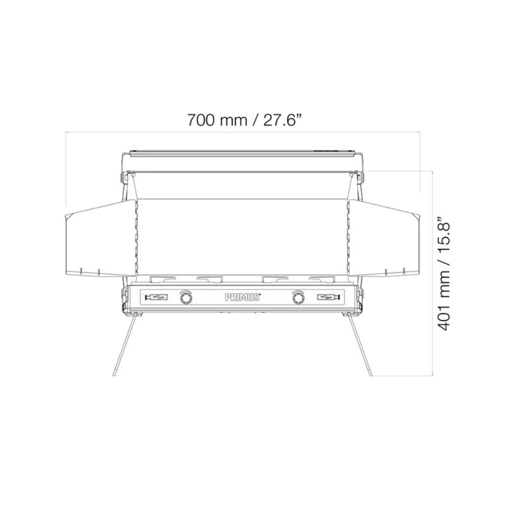 - Foldable Legs: Provide added table space when raised and snap into place for stability during cooking. Fold away for convenient transport.