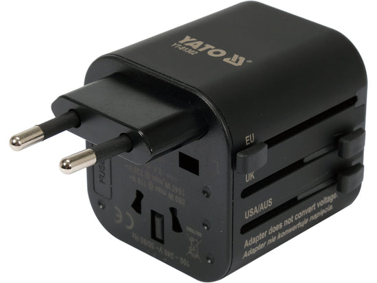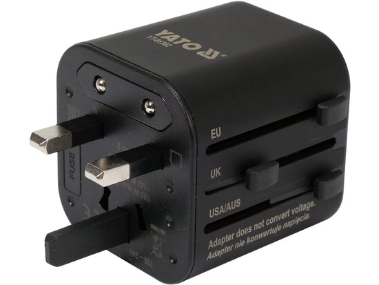 Removable plugs with a locking mechanism that prevents the pins from sliding back into the housing. Adapter protected against short-circuit by an easily accessible ceramic fuse. Housing made of durable flame-retardant plastic.