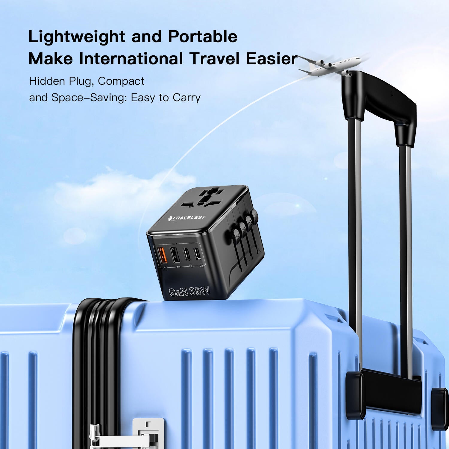 Travelest Universal Travel Adapter GaN 35W with 3 USB-C & 2 USB-A, AC 2500W with Resettable Fuse Works with 220+ Countries