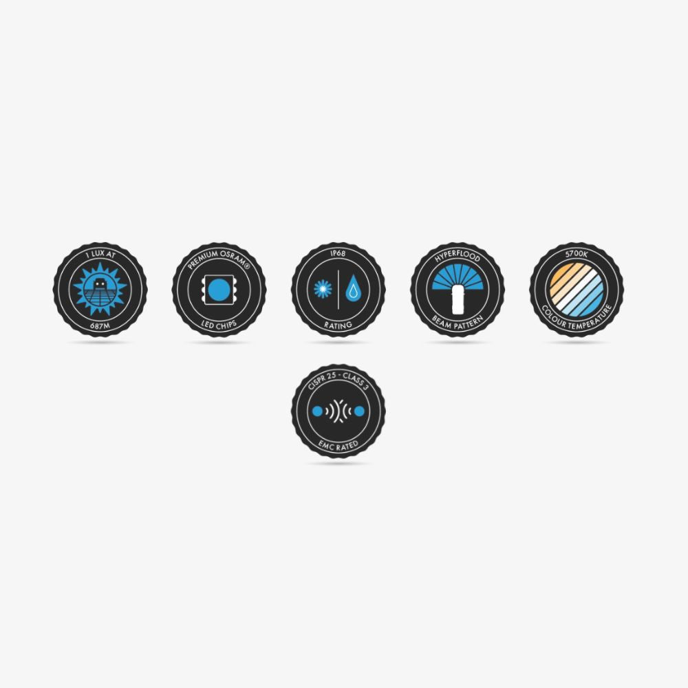 Built with high-performance OSRAM® OSLON SSL 150 LED chips and vacuum-metallised polycarbonate reflectors, the Hyperion light bar offers an exceptional 180° overall beam angle. This wide and powerful beam ensures you not only see far into the distance but also catch nearby hazards in time for quick reactions. A natural 5700K colour temperature helps reduce eye strain during extended night drives.
