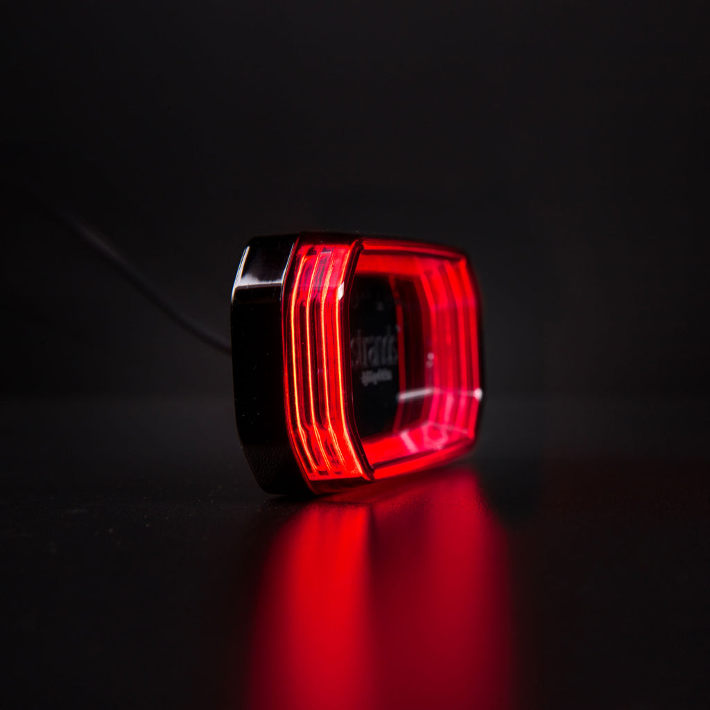 FOR9T IS PASSION. The FOR9T Scale gives any vehicle a completely new look, starting with this red rear position light. The hypnotic lines of the position light are concealed in the dark lens until activated, and the lens boasts a stylish and unique shape. The FOR9T hexagon pattern in the background gives an extra boost to the visual expression. It’s easy to replace your truck’s old position lights thanks to Scales’ standard size and wide voltage range.
