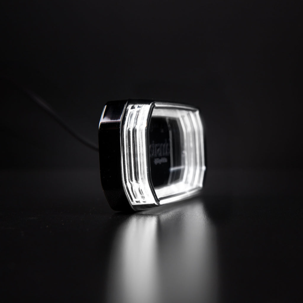 FOR9T IS PASSION. The FOR9T Scale creates a new look for your entire vehicle, beginning with a white front position light. The position light’s hypnotic lines are hidden in the dark lens until activated, and the lens has a stylish and distinct shape. The FOR9T hexagon pattern in the lens gives an extra boost to the visual expression. Its standard size and wide voltage range make replacing your truck’s old position lights easy. Show your passion and embrace the night.