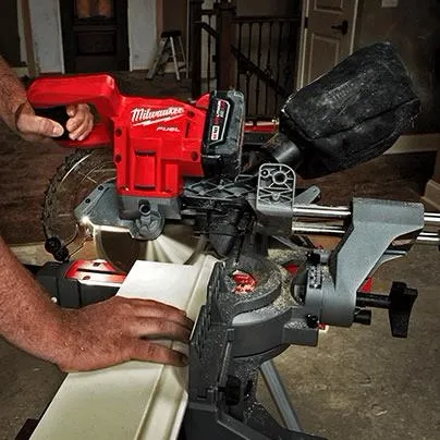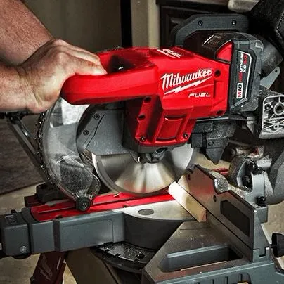 The M18 FUEL 254mm (10") Dual Bevel Sliding Compound Mitre Saw (M18FMS254-0)was designed to meet the demanding needs of professionals. Delivering greater capacity than many corded 254mm (10") Sliding Mitre Saws and the POWERSTATE Brushless motor delivering corded cutting performance. The M18FMS254-0 provides users a solution to replace their corded mitre saws. The M18 9.0 REDLITHIUM-ION HIGH DEMAND battery pack delivers up to 400 cuts per charge making the saw capable of lasting an entire day on site with only one pack. Premium features like an adjustable stainless steel detent plate, cam locking mitre system, easy access bevel adjustment lever and both a detent override lock and chop lock lever located on the front of the tool. The M18 FUEL mitre saw is designed for easy operation and repeatable, accurate cuts.
