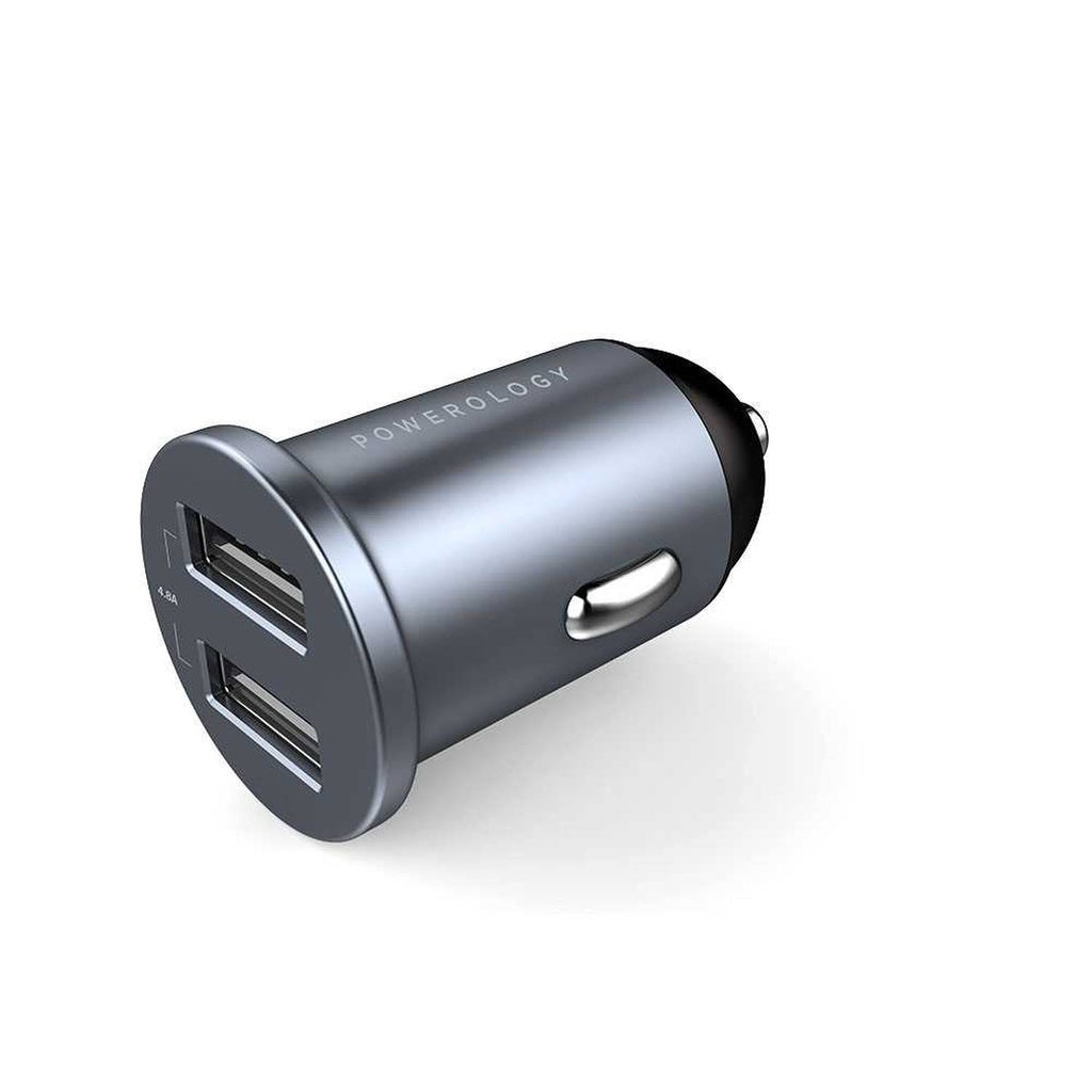 Powerology Dual USB-A Port Mini Car Charger for Two Devices Simultaneously, Quick Charging