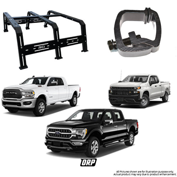 RCI | 18″ HD BED RACK STEEL FOR SHORT AND STANDARD BED | F150/GM 1500 2500/RAM 1500 2500 | C-CLAMP FOR DRILL FREE INSTALL