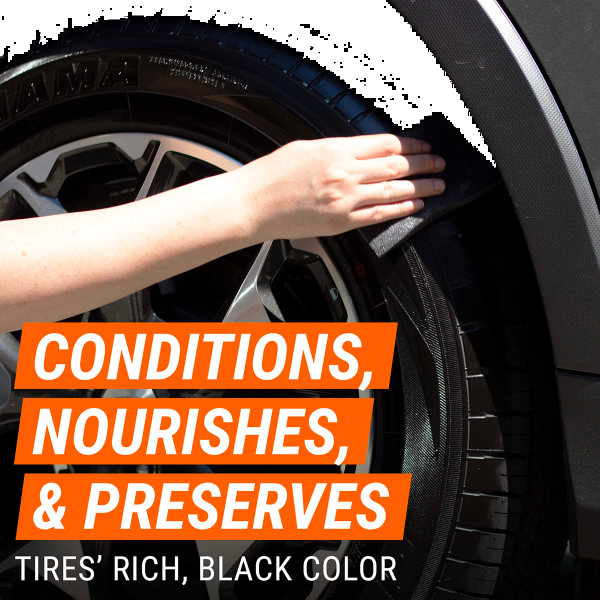 - Wrap the tyre with a protective film after drying Extra shine enhancer for intense, smooth, even gloss, cares and provides the rich blacktone of your tires, practical: no drying, no washing, no dirt, for long-lasting high-gloss protection, protects against harmful substances which may lead to cracking and fading, rigorous hypo