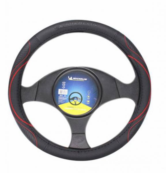 - Michelin ML1002NR Premium Artificial Leather Steering Wheel Cover Black with Red
