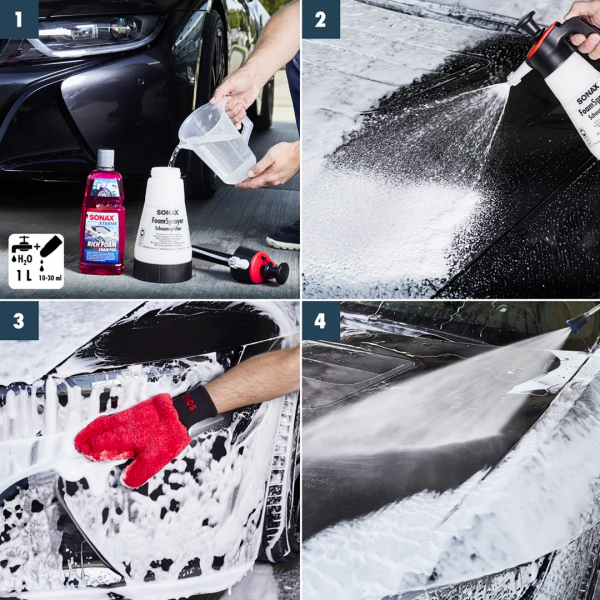 • Versatile can be used with a foam lance, foam gun (pressure washer) or a Hand Foam Sprayer OR by hand as regular car shampoo.