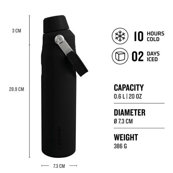 Stanley Aerolight Iceflow Water Bottle Fast Flow 0.6L/20 Oz-Black