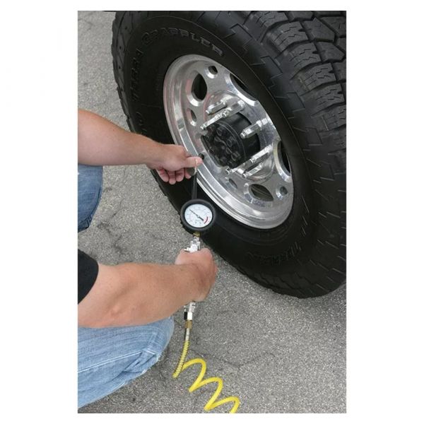 - 5-in-1 Inflator/Deflator Air Hose with Inline 100 PSI Gauge