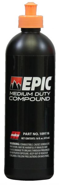 EPIC® Medium Duty Compound is a buffing compound that removes up to P2500-grit sand scratches and polishes to a beautiful gloss finish in one easy step using an orbital polisher. EPIC Medium Duty Compound is designed for medium correction, such as car wash swirls, snow brush scratches and oxidation. Containing no waxes, fillers or silicones, this buffing compound is 100% body shop safe. Plus, the water-based, dust-free formula significantly reduces clean-up time. Produce that special finish in no time, with the full EPIC® Paint Correction System.