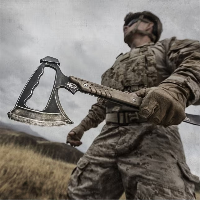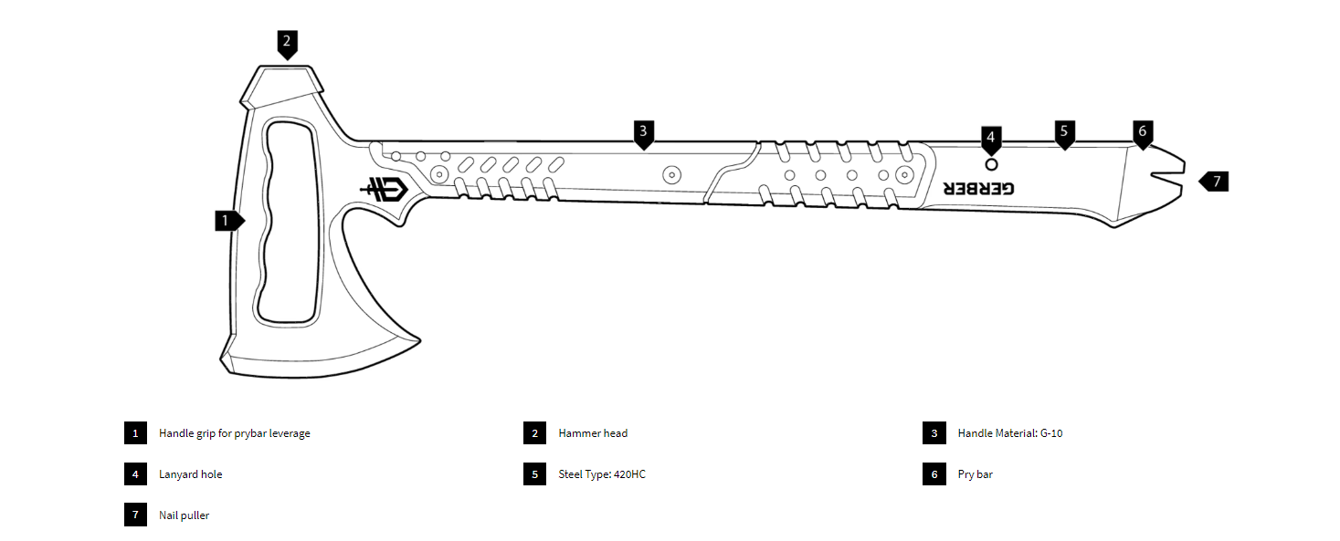 A marvel of simplicity, this tool has a single-minded goal: to settle the breaching argument. No barrier is a match for the beveled edge axe head, the hammer head element, or the pry bar built into the tan G-10 handle. A 420HC steel body won't break under pressure.