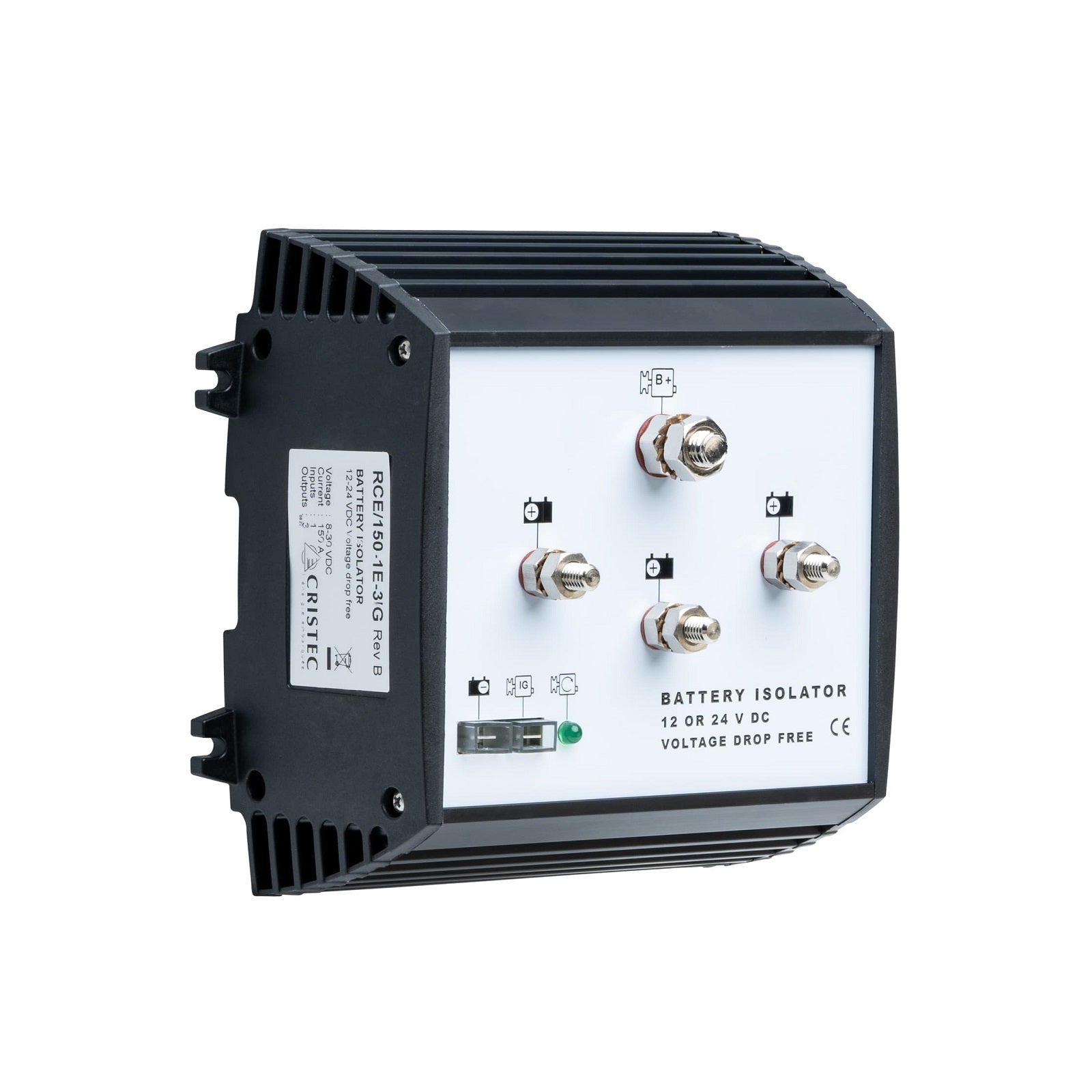 The RCE MOSFET electronic battery isolators are some electronic devices designed to direct the charging current to several batteries while preventing current from flowing from one battery to another. The DC input power source may be an alternator, a charger, a wind turbine, a solar panel, a hydrogenator, etc. The load distributors have a negligible voltage drop compared to conventional diode models which generate a drop of the order of 0.7VDC. The RCE load distributors can be used with any type of generator including electronic models, thanks to its special IG (Ignition = priming) terminal. The DC input power source will determine the rating of the splitter box: For a 120A alternator, choose a 100A splitter (if a battery is either deeply discharged or short-circuited, the available input current may flow through the splitter box.)