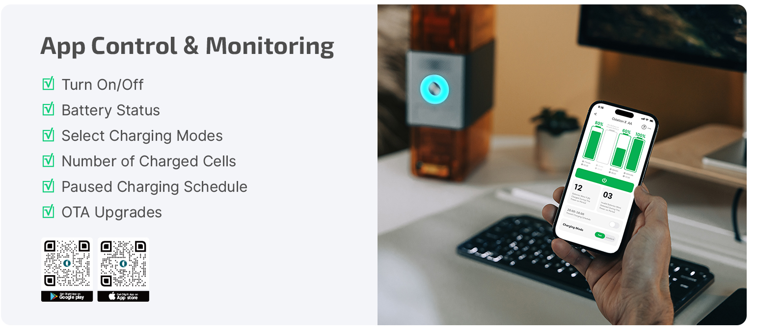 Smart App Control at Your Fingertips: Keep track of your charging progress, battery health and even get alerts for faulty batteries—all from your smartphone.