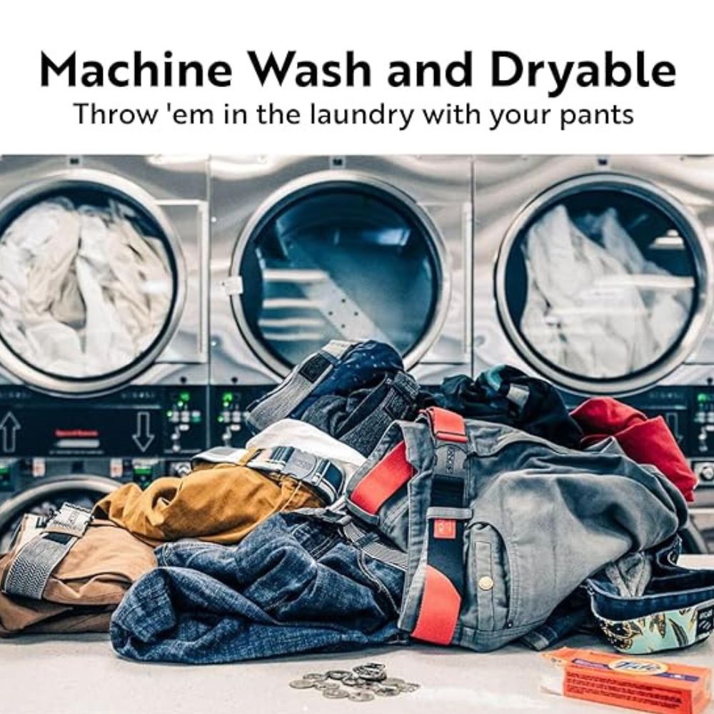 MACHINE WASHABLE: Constructed from machine washable materials, you can leave the belt in your pants on laundry day for easy cleaning and maintenance.